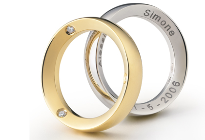 Collezione Fashion - modello F25, disponibile in oro bianco, giallo e rosa, con un brillante laterale e senza brillante. Larghezza 4,5 mm.